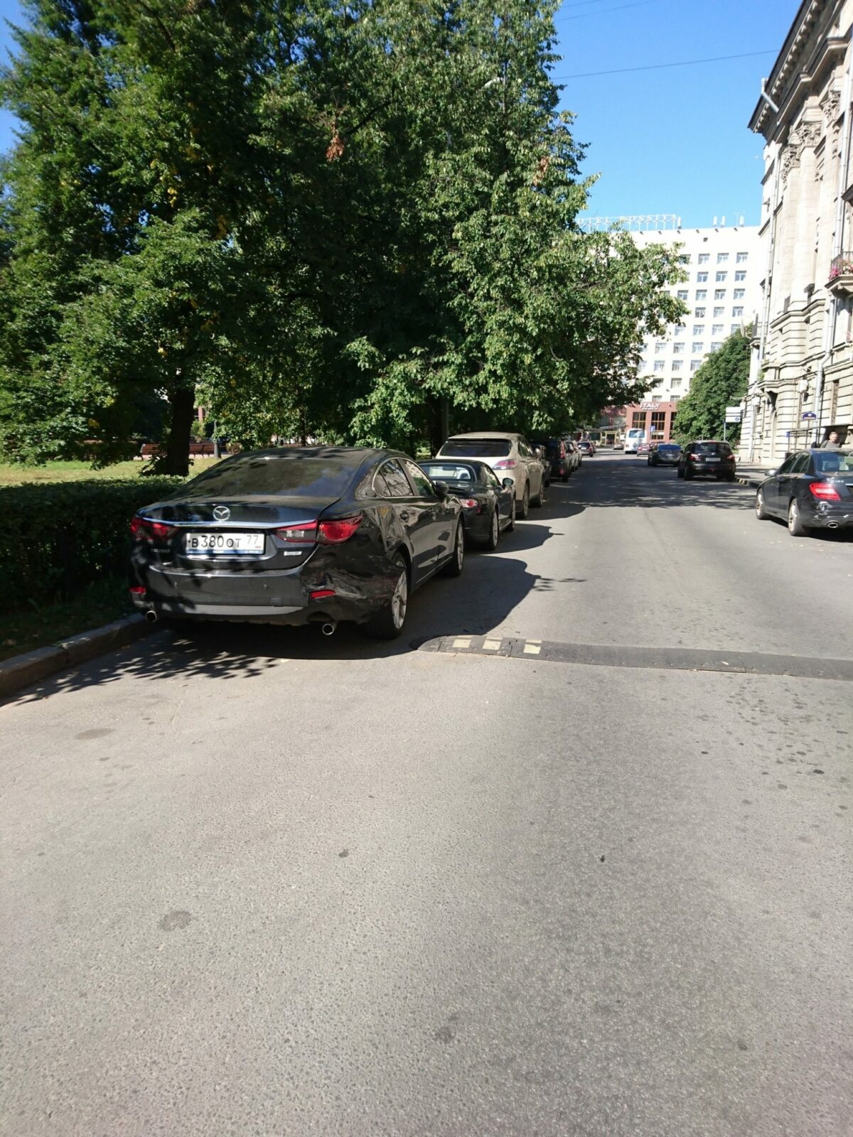 В Московском районе на пл.Чернышевского напротив дома 5. С 7 на 8 августа разбили машину Mazda 6.