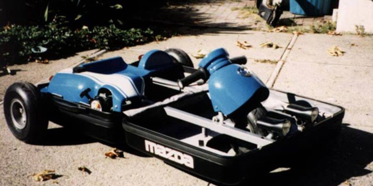 В начале 90х, было золотое время для Mazda, компания выпустила всем известный роадстер MX-5, победила в гонках Ле-Ман с роторным гоночным автомобилем 787B. Таким образом было идеальное время для создания автомобиля, встроенного в чемодан =)