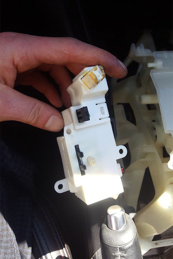 Когда ставите рычаг на P и выключаете двигатель и не отключается магнитофон, то проблема в этой кнопке. В сервисе сказали что надо вообще кулису заменить но сумма очень большая, но починить тоже может за 3600 рублей. Не надо слушать никого в сервисе, ведь сделать это вы тоже можете сами.