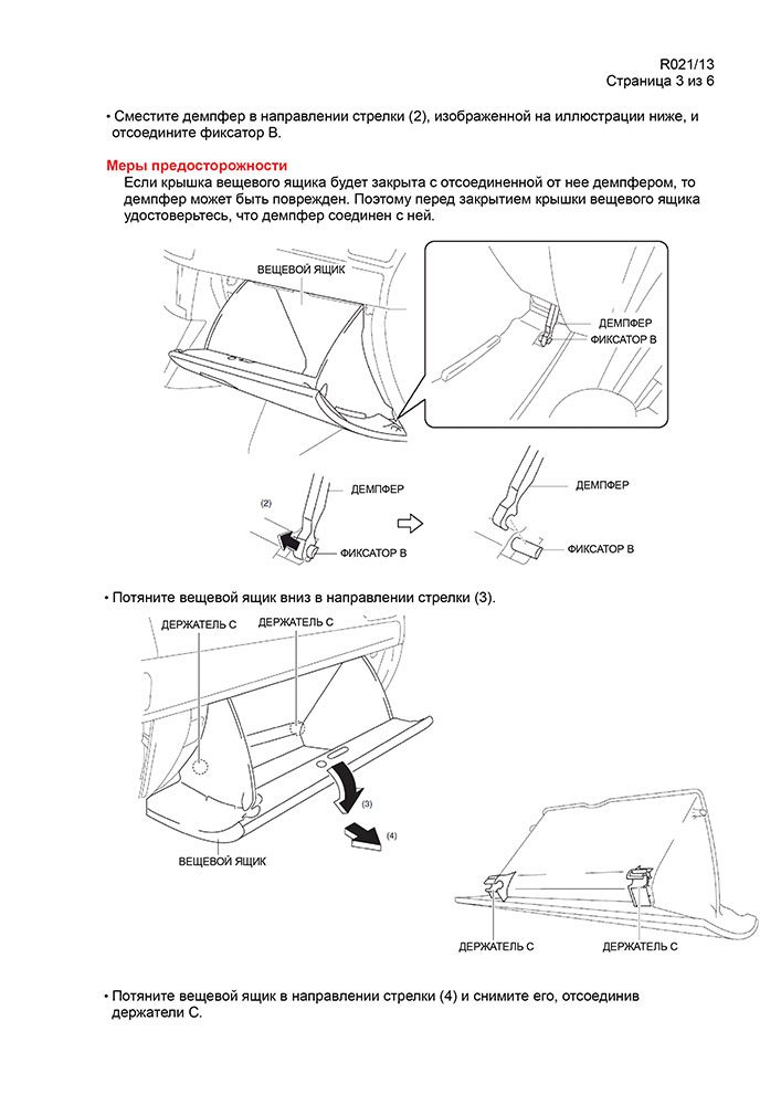 Отсоедините «крючок» справа, надавите на стенки бардачка и опустите его вниз.