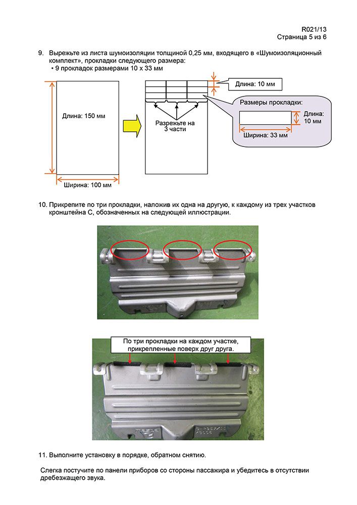 - Проклейте места указанные в бюллетене шумоизоляцией.